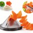 Ya conocemos algunos accesorios o pequeños utensilios de cocina que nos ayudan a cortar algunas hortalizas con formas especiales para realizar presentaciones más llamativas, como el cortador guirnalda, pero hay también otros utensilios que más que realizar elementos decorativos comestibles, nos permite transformar los alimentos vegetales en su forma, para elaborar una guarnición o un plato completo, un trampantojo habitual es convertir un calabacín en unos ‘tallarines’.