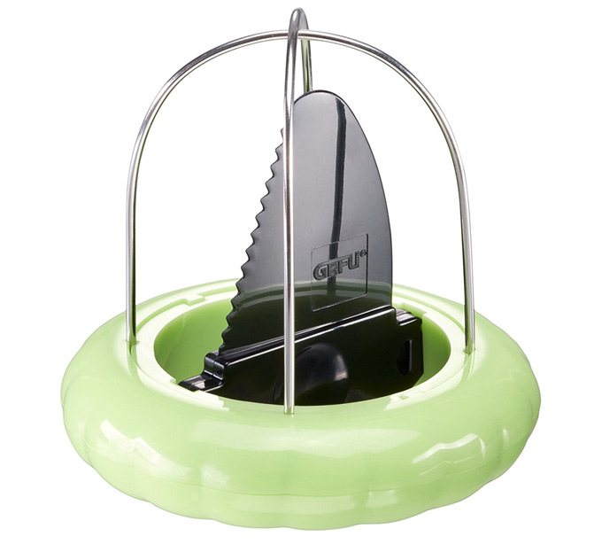 Hay varios modelos de cortadores de kiwis en el mercado, aquí os mostramos uno hace unos años, pero no todos tienen el accesorio que sirve para cortar la fruta por la mitad. Gefu ha diseñado su Kiwi Teiler Twista incorporando una especie de cuchillo que se aloja en el divisor de la fruta, que tiene un diámetro de 7 centímetros y una altura de 7 centímetros también.