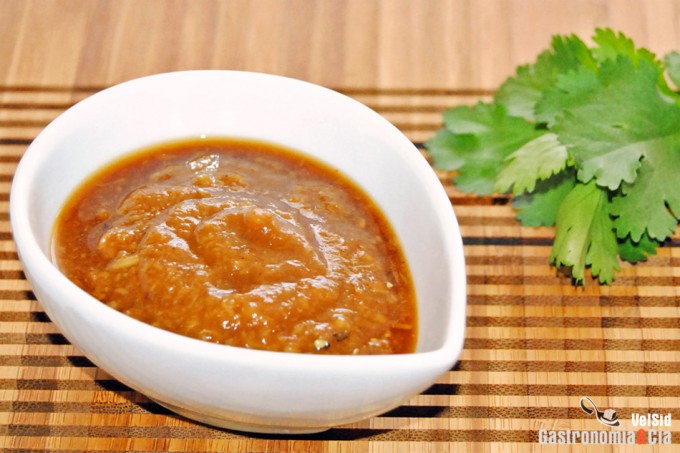 Chocolate caliente con mantequilla de cacahuete en tarro