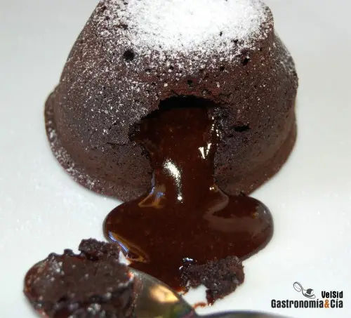 Reparte la crema obtenida en los moldes. Ahora puedes optar por cocerlos si los quieres servir enseguida, para lo que tendrás que tener el horno precalentado a 200º C y cocer durante 6 minutos contados. También puedes congelarlos y tenerlos preparados para cualquier ocasión en la que quieras sorprender a tus comensales con este exquisito postre.