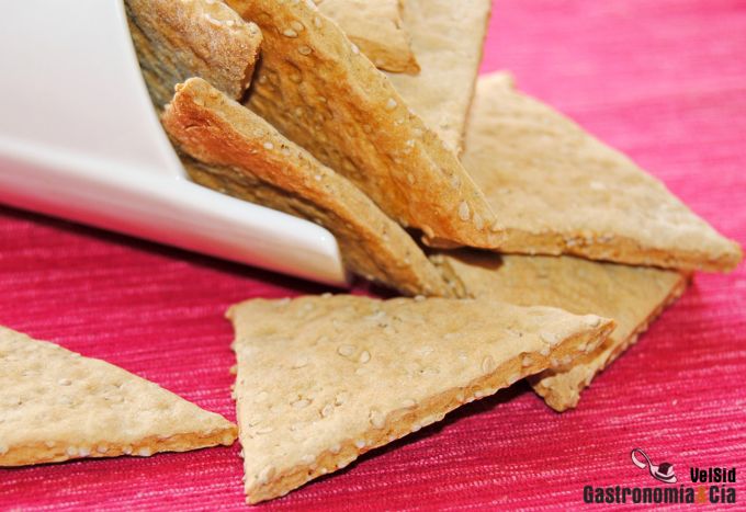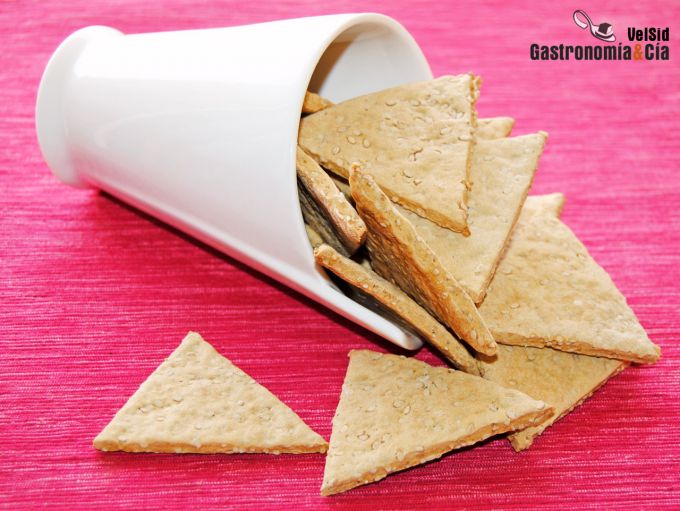 En cualquier momento nos podemos haber quedado sin tostadas para untar el paté, sin galletas saladas para servir con un dip o simplemente queremos hacer nuestros crackers para picar o acompañar cualquier comida, pues es fácil, aparte de lo que cada horno tarde en calentarse, en 20 minutos podemos elaborar estos crackers de sésamo exprés.