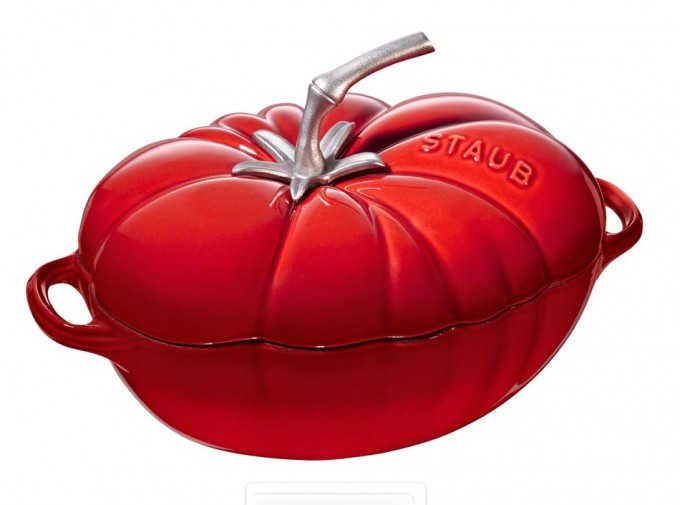 En la foto que ilustra estas líneas podéis ver una de las cocottes de Staub diseñada con un objetivo digno de las cocinas muy espaciosas y con muchos armarios, la Tomato Cocotte o Cocotte Tomate, creada para la elaboración de sopas de tomate y similares, aunque evidentemente, se puede utilizar para cualquier guiso.