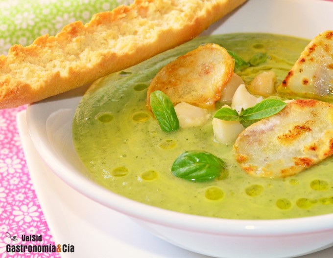 Hay muchas formas de hacer una crema de calabacín, normalmente se enriquece con otras hortalizas y también se añade queso, crema de leche… y de la forma más sencilla, que es utilizando únicamente calabacín (y el aderezo básico), pocas veces se elabora. Nosotros os proponemos preparar esta receta de Crema de calabacín y albahaca con chips de ajo, un entrante que podéis servir caliente o frío.