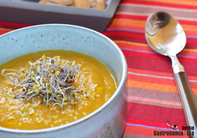 Muchas veces añadimos unas gotas de zumo de limón o la piel de este cítrico recién rallada para aportar una nota de frescor y algo de acidez a las cremas de verduras, legumbres y demás, otras veces aprovechamos las cualidades de alimentos ‘vivos’ como son los germinados, ofrecen un contraste tan rico que no podemos dejar de recomendar que lo probéis, hoy lo hacemos con nuestra Crema de calabaza y clavo con germinado de kale, es sabrosa y con un toque fresco ofrecido precisamente por el germinado, y las semillas de cáñamo fresco también tienen su porqué.