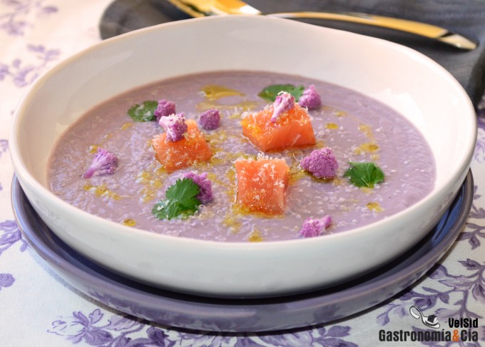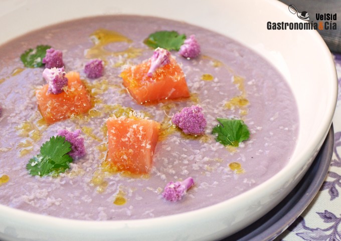 Aunque después de las fiestas volvamos a disfrutar de platos más ligeros, no tenemos por qué dejar de hacer platos llamativos y ricos, pues cocinamos porque nos gusta estar entre fogones y nos encanta disfrutar en la mesa. Y mucho hemos disfrutado con esta Crema de coliflor morada con salmón marinado que podéis ver sobre estas líneas.