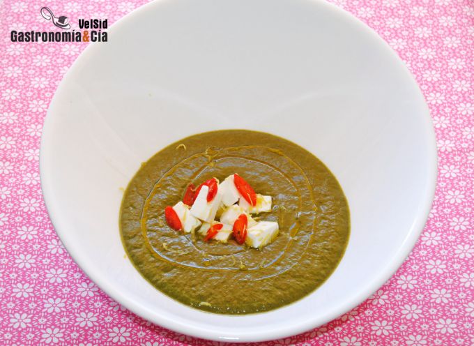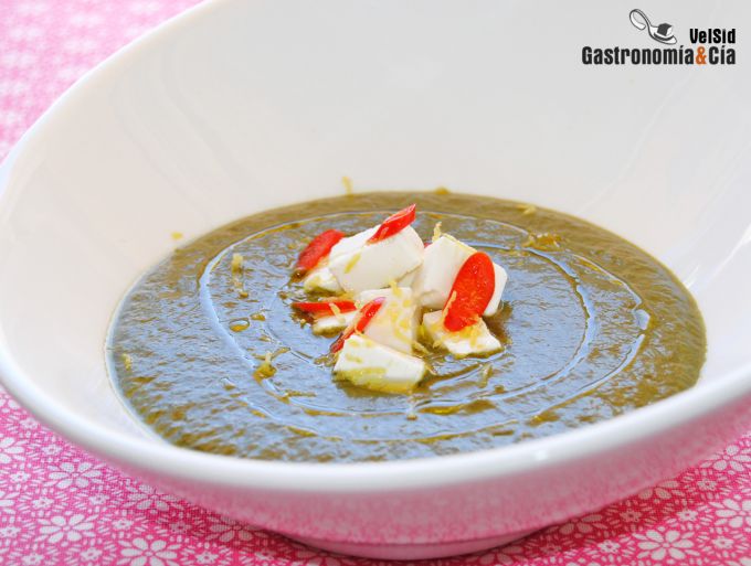 Sirve la Crema de espinacas al limón repartiendo en el centro de los platos el queso, la piel rallada de limón, la guindilla y terminando con un hilo de aceite de oliva virgen extra. ¡Buen provecho!