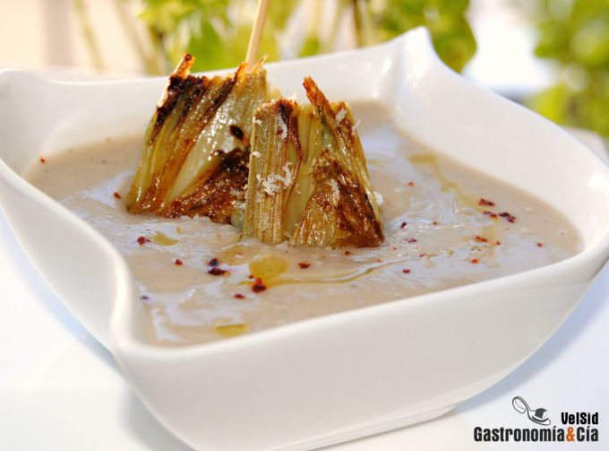 Un aperitivo que alimenta y sorprende al paladar más selecto, es esta Crema de galeras y castañas con alcachofas. Los hemos servido en varias ocasiones en pequeños cuencos o vasitos, y así os recomendamos probarlo. Si después os quedáis con ganas de más, será buena idea convertirlo en un entrante añadiendo proporcionalmente más cantidad de cada ingrediente. Aunque siempre está la posibilidad de matizar los sabores que a cada uno le guste más, es decir, si se desea más intensidad de sabor del fruto o del crustáceo.