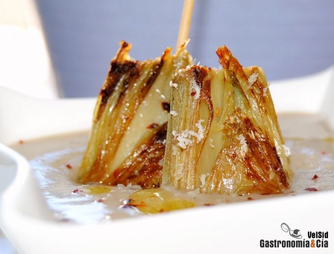 Sirve la crema de galeras y castañas colocando en el centro unos cuartos de alcachofa, ralla un poco de castaña asada dejándola caer en el plato y como comentábamos, de forma opcional añade un poco de pimienta aleppo que dará un poco de alegría en color y sabor.
