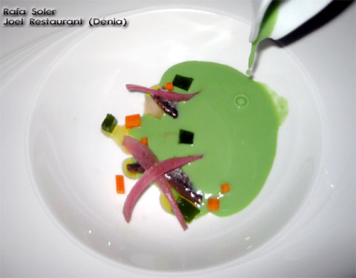 Rafa Soler ha compartido con nosotros algunos de sus platos para la sección de Recetas de los Chefs, hoy es una Crema de guisantes, anchoas, encurtidos y menta que se presenta como un plato ideal para estos días de calor, no sólo refrescante, además es ligero y nutritivo. Pero tenemos algo más que comentaros sobre este joven y emprendedor cocinero, os va a interesar mucho si estáis en la Comunidad Valenciana o vais a venir a veranear por aquí.