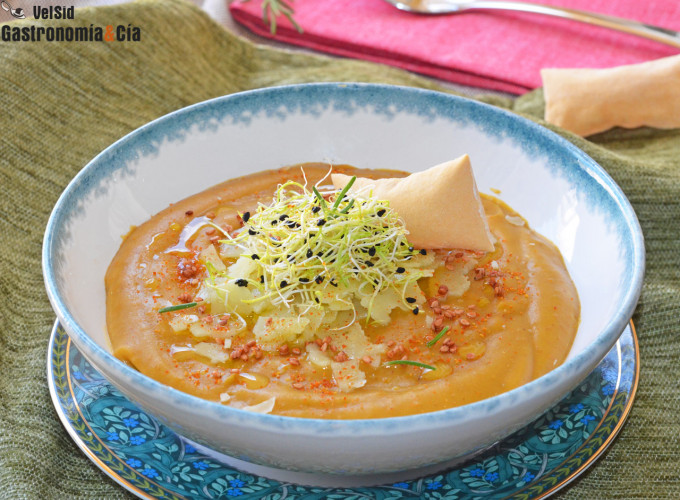 En cuanto al boniato y los ajos asados, ya sabéis cómo nos gusta hacer el boniato al horno para sacar todo su sabor y dulzor, y los ajos también los solemos hacer en el horno cada semana, para ir gastándolo en distintos platos, como esta crema de patata y boniato asado. Sobra decir que, si queréis hacer este plato con un queso de oveja curado español, os sobran posibilidades y será igualmente un éxito. Y poco más hay que decir, sólo desearos que disfrutéis de la cocina, de la buena mesa y de la comida casera.