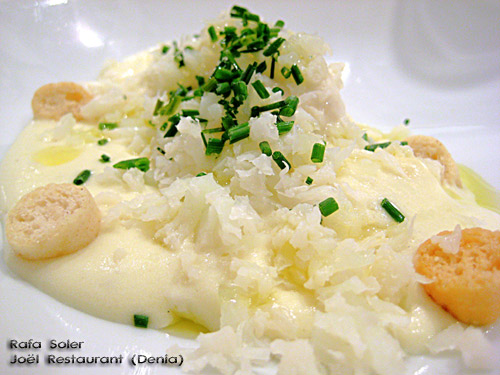 El chef de Joël Restaurant Bistronòmic, Rafa Soler, nos remite una receta con la que sorprender a nuestros comensales, un entrante que podremos disfrutar en una comida de celebración (además de en su restaurante), que combina sabores tradicionales con nuevas texturas para los paladares atrevidos, es el Cremoso de bacalao, patatas, coliflor y alioli tradicional.