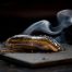 Aligeramos con un poco de almíbar tpt parte de la compota realizada anteriormente. Gelatinizamos con 4’4 gramos de cola de pescado (hojas de gelatina). Lo vertemos encima del cremoso de foie para hacer la base del aperitivo. Congelar el conjunto. Desmoldar.
