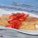 Cubre los crepes rellenos de ricotta con las fresas a la vainilla y, si lo deseas, termina con un poco de sirope de chocolate. ¡Buen provecho!