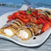 Rellena los crepes con el queso ricotta y enróllalos, colócalos en los platos de postre o en una bandeja para servir en el centro de la mesa.
