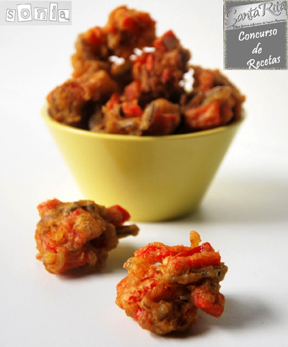 Sencillo pero muy rico el Crujiente de cebolla y pimiento al curry que elaboró Sonia, autora del blog L’Exquisit para participar en el Concurso de Recetas Santa Rita II, que tenía como ingrediente de valor la harina de tempura para verduras y que es merecedor de alzarse con el Premio Santa Rita. ¡Muchas felicidades Sonia!