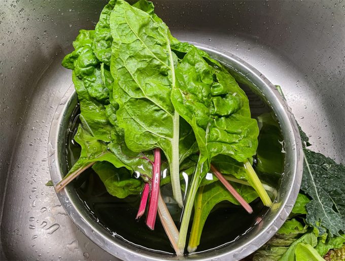 – Enjuagar las hojas que se van a consumir con agua corriente frotándolas suavemente con las manos para ayudar a eliminar la suciedad y los gérmenes.