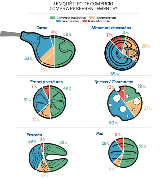 Del informe sobre lo que los consumidores valoran al hacer la compra de productos de alimentación y droguería, también es interesante destacar que los criterios han cambiado en los últimos cuatro años, en la anterior encuesta se valoraba más el precio y el ahorro, mientras que actualmente se valora más el producto fresco de calidad y la variedad. En consecuencia, también hay que señalar que los comercios tradicionales y los mercados de abastos no han perdido tanto como se pensaba, en parte, a causa de la crisis y de la fuerte competencia de las cadenas de supermercados, hipermercados y tiendas descuento.