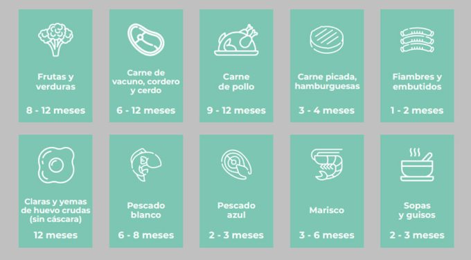 Y no sólo hay que tener en cuenta el tiempo de conservación de los congelados si se habla de sobras de comida, también cuando congelamos alimentos frescos para tenerlos siempre a mano, sean pescados, carnes, huevos, legumbres, hortalizas, frutas… De momento, vamos a mostraros las recomendaciones de la AESAN (Agencia Española de Seguridad Alimentaria y Nutrición) sobre el tiempo que pueden estar congelados los alimentos.