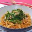 Espirales de lentejas rojas con bimi y dukkah de nueces y pimientas