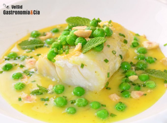 Bacalao con salsa de naranja, cebollino y hierbabuena