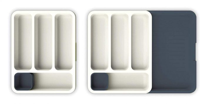 En las fotos podéis ver el cubertero extensible DrawerStore de la mencionada marca de los hermanos Antony y Richard Joseph, pero que ha sido diseñado por Studio17 Design. Sobran las explicaciones sobre el objetivo de este organizador de cajones, lo bueno es que se adapta tanto a cajones pequeños como grandes y que tiene distintos compartimentos para poder guardar ordenadamente todos los utensilios de cocina o, al menos, los más básicos y de uso diario.
