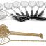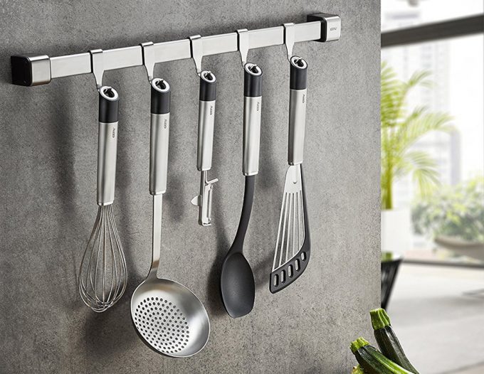 Los denominados ‘sets de utensilios de cocina’ que suelen estar compuestos de seis piezas son todos muy similares, varían el diseño, el material, el color… pero básicamente todos llevan una espumadera, un cucharón, una cuchara de espaguetis, una cuchara de servir, un tenedor y una espátula, a veces lisa y otras veces perforada.