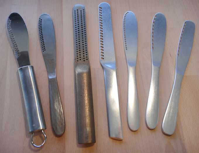 Parece que han dedicado varios meses a su desarrollo, bajo estas líneas podéis ver los diferentes prototipos que creó la empresa antes de lograr diseñar el cuchillo perfecto para untar mantequilla fría. Está fabricado en acero inoxidable y se ofrece en dos acabados, pulido clásico o acabado satinado, es fácil de usar y de limpiar, se puede introducir sin problemas en el lavavajillas.