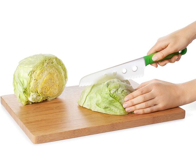 De todas formas, seguro que habrá quien encuentre que el cuchillo deshojador de Oxo, cuyo nombre comercial es Lettuce Knife with Kale Stripper, es lo que estaban buscando. Lo bueno de este tipo de cuchillos es que son muy prácticos para cortar sobre superficies delicadas porque no las raya. También se utilizan a menudo para cortar tartas y pasteles, entre otras cosas.
