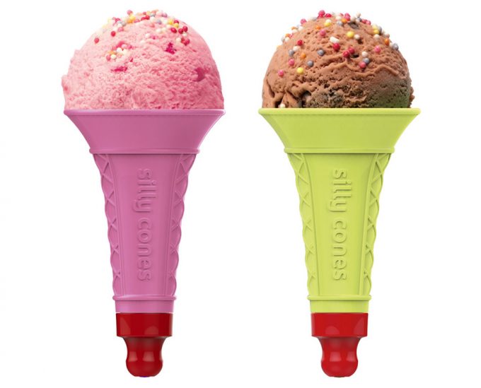 Hay muchas personas a las que les encanta el helado pero lo que queda derretido, líquido, no les gusta, por eso se considera más un cono para que los niños tomen helados caseros, porque les encantará terminar bebiendo su helado como se muestra en las fotos de los Silly Cones (así se llaman los conos reutilizables). Claro, que también está la posibilidad de terminar ‘bebiendo’ el helado derretido haciendo del cono como si fuera un vaso.
