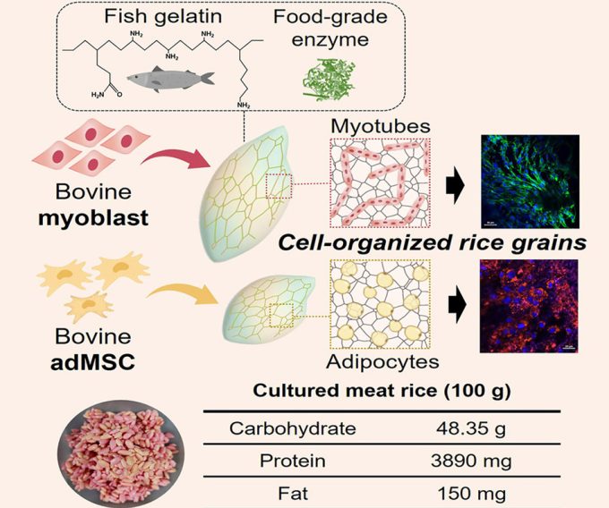Los expertos han utilizado la estructura interna del arroz como un andamiaje estable para el cultivo celular en 3D, que favorece el desarrollo de células madre procedentes del músculo esquelético y la grasa de la carne de vacuno. Aseguran que el arroz con carne de cultivo celular podría constituir una fuente alimentaria básica en el futuro por varias razones, su contenido en nutrientes, su reducida huella ambiental, la facilidad para la producción a escala, que se trata de un ingrediente alimentario seguro con una baja incidencia de alergia o por su coste económico, entre otras cuestiones.