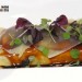 Cocina el rabo de buey durante seis horas, la carne prácticamente se deshace. La envuelve con pasta fresca y hace una glasa reduciendo el jugo de cocción del rabo, con ella cubre el ravioli que termina con unas lascas de queso Comté y unos germinados, no como elemento decorativo, busca que tengan sentido y proporcionen armonía en la degustación, como el shiso purpura o atsina cress.