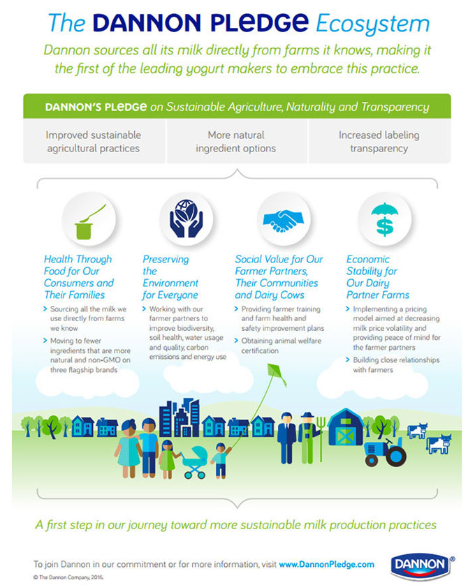 Danone se compromete a utilizar en sus tres principales marcas, Dannon, Oikos y Danimals, ingredientes más naturales, sin aditivos químicos sintéticos y sin materias primas transgénicas. Estas marcas representan el 50% de las ventas de la empresa en el país y según explica la compañía, su cometido es ser líder en la fabricación de yogur no ecológico que no contiene transgénicos.