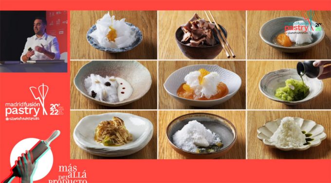 El chef y maestro pastelero Albert Adrià y David Gil, chef pastelero y director de Innovación de I+Desserts, realizaron una presentación y ponencia en la primera jornada del congreso de panadería y pastelería de obrador y restaurante, Madrid Fusión Pastry, que se está desarrollando del 28 al 30 de marzo en IFEMA Madrid, en el marco de la Cumbre Mundial de la Gastronomía. Os adelantábamos algo al respecto en el post en el que conocimos al ganador del premio Pastelero Revelación Madrid Fusión 2022, noticia que os recomendamos leer aquí, si no la habéis visto ya.