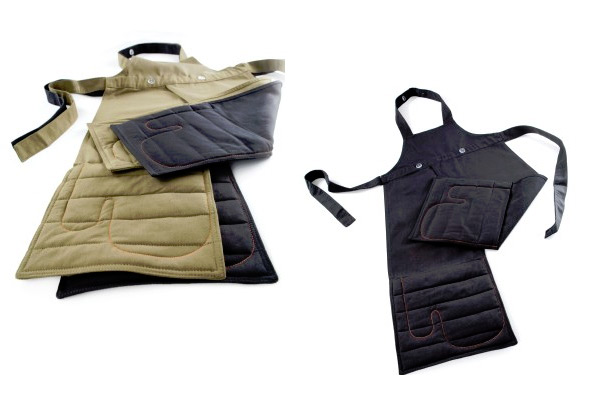 Este delantal fue diseñado por FLEX / INNOVATIONLAB ®, diseñadores de distintos productos para grandes marcas, muchas veces galardonados y con exposiciones en museos como el MOMA de Nueva York o el Museo Stedelijk de Amsterdam. La comercialización está en manos de Royal VKB (también se vende en España), está fabricado en algodón (apto para introducir en la lavadora), disponible en dos colores, y sus medidas son de 88×61 centímetros.
