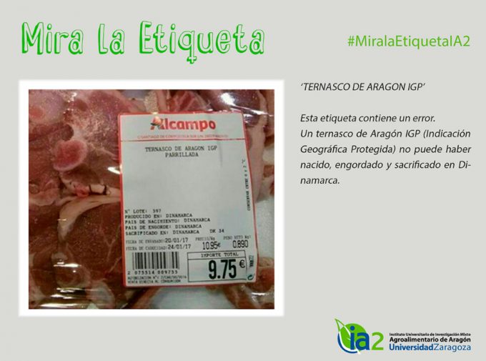 Y el tercer ejemplo es algo muy descarado, etiquetan con el nombre de ‘Ternasco de Aragón IGP’ (Indicación Geográfica Protegida, es decir, un producto que posee un origen geográfico determinado y que tiene alguna calidad o reputación que se debe a dicho lugar de origen) a un producto cárnico cuyo animal ha nacido, se ha engordado y se ha sacrificado en Dinamarca. Es una vergüenza ver hasta qué punto llegan los productores y comerciantes para engañar a los consumidores, una vergüenza…