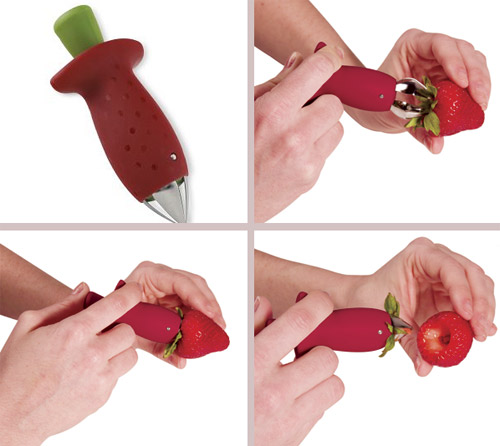 Pero como por algunos comentarios sabemos que un gran colectivo prefiere disponer de utensilios que les permitan preparar la fruta rápida y cómodamente, os mostramos el descorazonador de fresas de Chef’n, otra de las marcas de accesorios de cocina que siempre piensan en la practicidad y el diseño en la cocina.