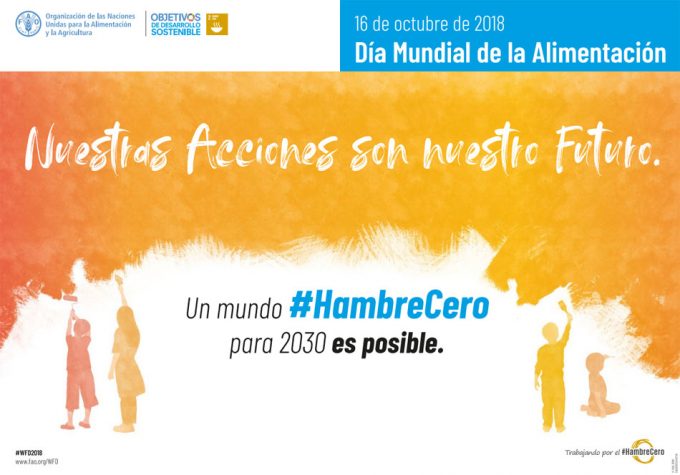El próximo 16 de octubre se celebrará el Día Mundial de la Alimentación 2018, celebración cuya finalidad es poner en relieve los problemas relacionados con el hambre, así como concienciar a todos los países sobre la necesidad de que pongan en práctica los mecanismos oportunos para acabar con este problema cumpliendo con la meta del objetivo número dos de los Objetivos de Desarrollo Sostenible, el hambre cero.