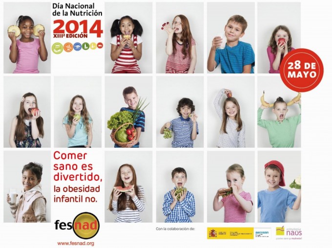 En la decimotercera edición del Día Nacional de la Nutrición el lema de la jornada también es muy serio, y así hay que tomárselo: ‘Comer sano es divertido, la obesidad infantil no’. La foto que han preparado para ilustrar esta celebración no está muy cerca de la realidad, en general, los niños no sonríen por disfrutar de una fruta o verdura, y no existe la representación de niños con sobrepeso y obesidad que hay en nuestro país, según los datos del estudio ALADINO, 1 de cada 2 niños tiene exceso de peso.