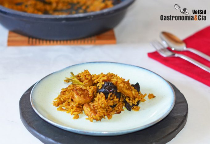 Arroz de setas shiitake y salchichas veganas
