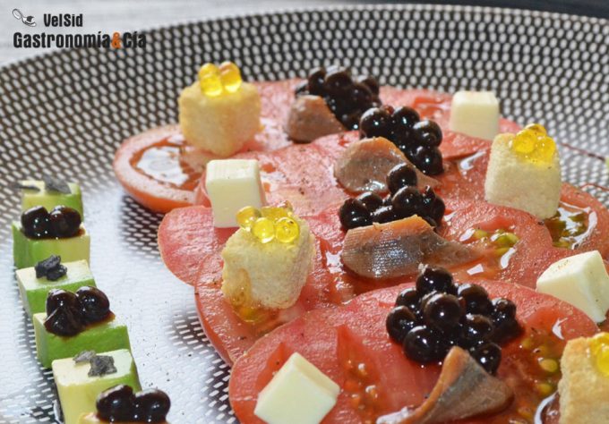 Ensalada de tomate con anchoa, aguacate y vinagreta teriyaki ![]()