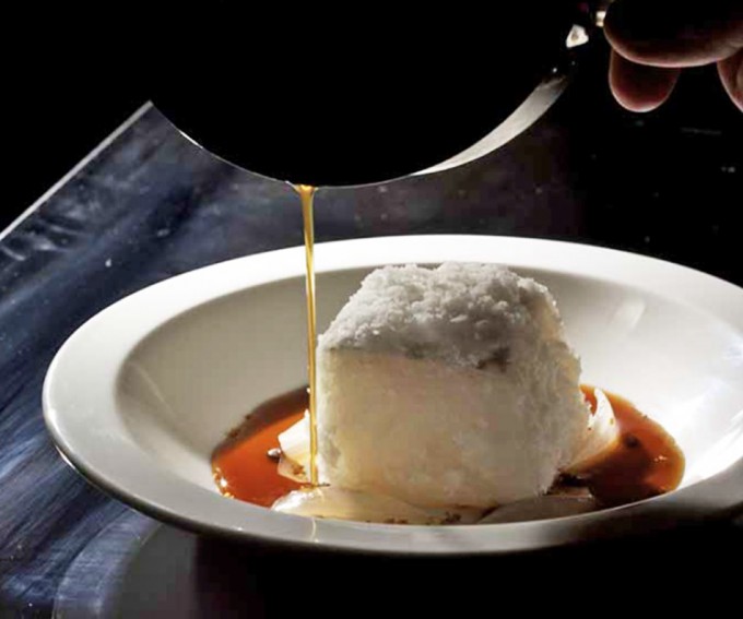 Bacalao con infusión de legumbres y trufa de Canarias de Andrea Bernardi