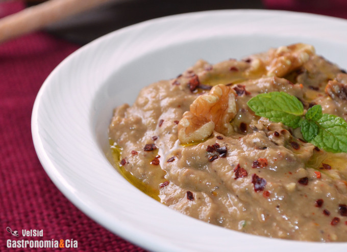 Como toda salsa o dip vegetal para tomar untando o mojando unas tostaditas, unos colines, unos totopos, unos bastones de polenta… es una receta muy fácil de hacer, una vez que se tienen las berenjenas asadas, sólo es cuestión de condimentarlas y triturar para obtener la textura deseada. En este caso no queremos un dip muy fino, por lo que podemos dejar algunos trozos de nueces y también el tomate seco lo añadimos picado, pero si lo preferís, podéis triturar bien todos los ingredientes. Tomad nota de la receta de este dip o salsa de berenjena con nueces y tomate seco, probadla y nos contáis qué os ha parecido.