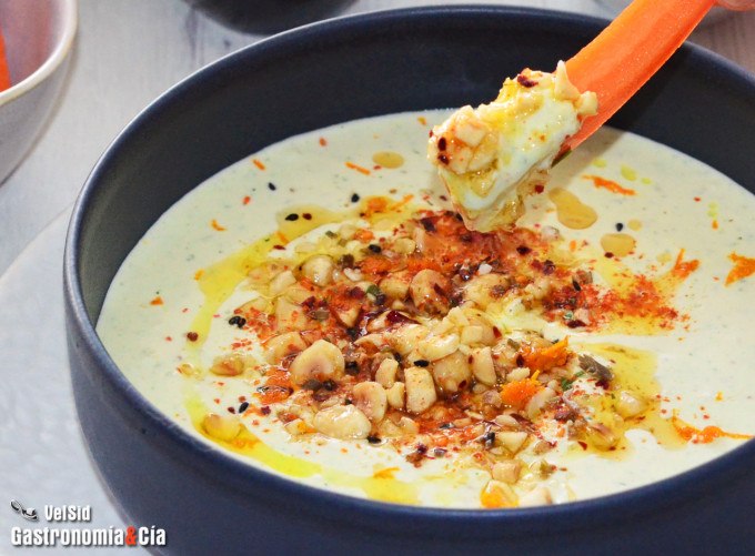La receta de este Dip de queso feta, kéfir y avellanas es muy fácil de hacer y presentar como un aperitivo saludable, es ideal para mojar vegetales y crackers que, dicho sea de paso, también podéis hacer vosotros mismos. En Gastronomía y Cía tenéis recetas de crackers y otros tipos de bocados y tostadas crujientes deliciosas, tanto para esta salsa de queso feta como para vuestros dips favoritos. Lo que vais a disfrutar en la cocina y viendo la cara de vuestros comensales saboreando vuestras creaciones, no tiene precio.