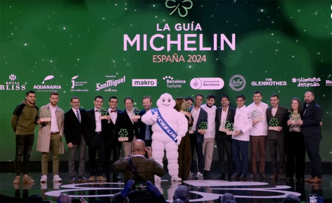 A continuación os vamos a transcribir la lista de las nuevas estrellas Michelin de la guía del año 2024 en sus tres categorías, además de las nuevas estrellas Verdes, y los Bib Gourmand. Recordad que Michelin también otorga algunos premios, siendo la novedad de este año el Premio Michelin al Mejor Sumiller, y como muchos augurábamos, el ganador de este premio ha sido Josep Roca, de El Celler de Can Roca***. No menos importantes son los premios a la Joven Chef (Young Chef Award) que han otorgado a Martina Puigvert de Les Cols** (Olot), al Chef Mentor, cuyo merecedor es Juan Mari Arzak de Arzak*** (San Sebastián) y el premio al Servicio que ha recibido Joan Carles Ibañez de Lasarte*** (Barcelona).
