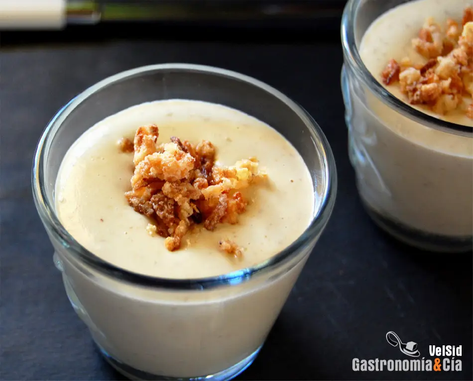 Crema de gorgonzola y nueces: Este aperitivo es contundente, una crema que combina queso y frutos secos aporta energía. Para que el contenido en grasa no sea excesivo, en lugar de nata utilizamos leche evaporada. Es muy fácil de hacer y encantará a los apasionados del queso azul.