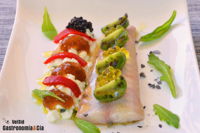 Sardinas ahumadas con tomate fresco y seco, aguacate y albahaca