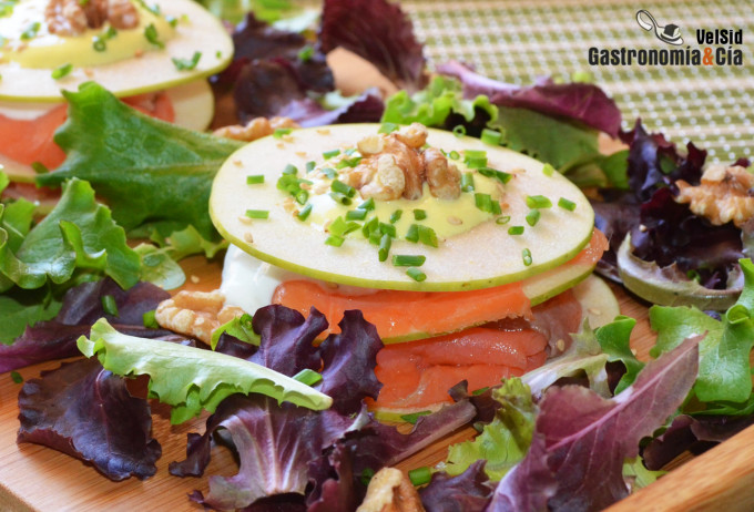 Sardina ahumada con tomate seco, manzana verde y aceitunas