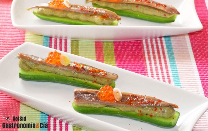 Mini pepinos con aguacate y anchoa