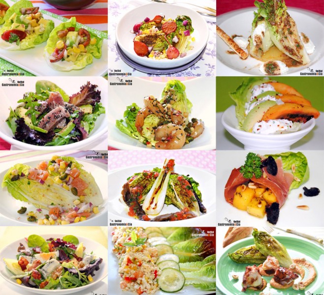 A continuación podéis acceder a las recetas con cogollos de lechuga entre las que encontraréis platos en los que son protagonistas, otros en los que son un ingrediente más y también son servidos como guarnición. Identificareis los platos de la foto superior con las recetas a continuación, siguiendo el orden habitual, de izquierda a derecha y de arriba abajo.