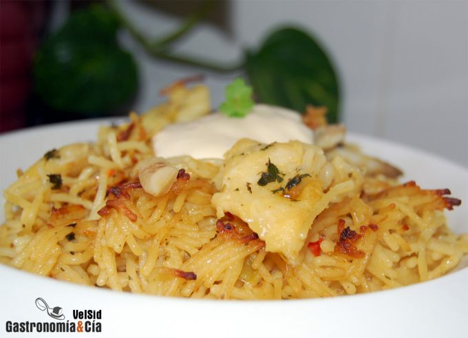 Fideuà de bacalao y navajas